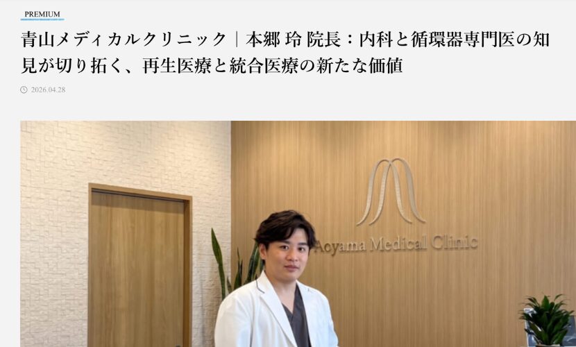 掲載記事では、再生医療を応用したアンチエイジング医療をはじめ、先進医療に対する専門的な見解についてご紹介いただいております。